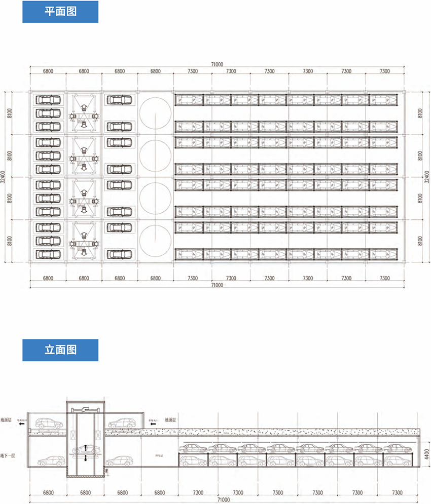 側叉型:利用夾持輪胎技術進(jìn)行汽車移載見關,可將(jiāng)汽車直接放入多層貨架,節省土建工程量。